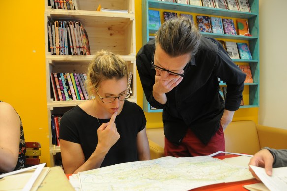 The student editor of the Prague group discusses what stories are due before deadline. (photo by Merle Dieleman)