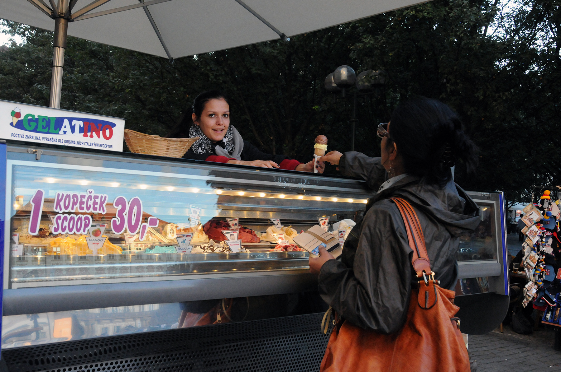 Gelato2 Published September 6, 2015 at 1800 × 1196 in Street food: Options are everywhere Gelato and ice cream stands are everywhere. This was a scoop of nougat and a scoop of chocolate, about, $2.50, not the cheapest around, but this is Old Town Square.