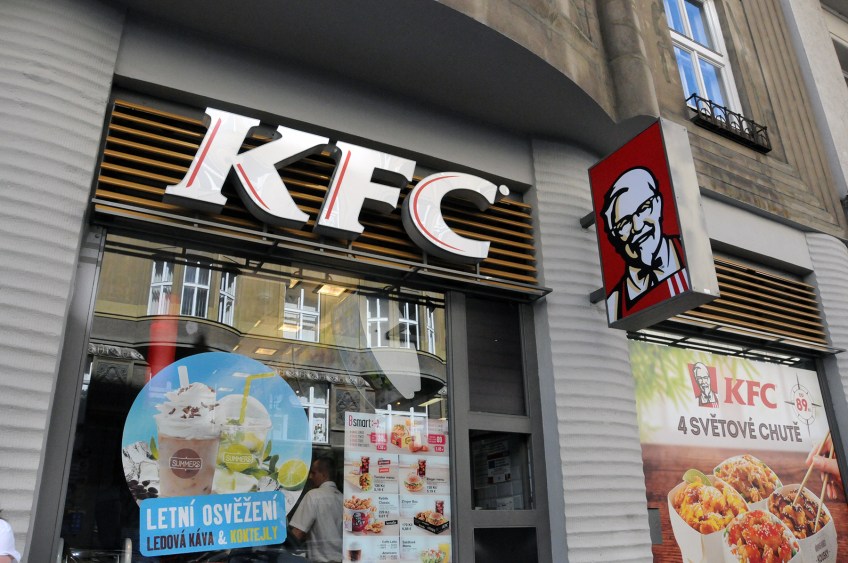 KFC Published January 19, 2016 at 1800 × 1196 in Lessons learned Right in the middle of Wenceslas Square, Prague’s best known shopping district, the Colonel smiles down and promises not only fried chicken but “4 světové chutě” (world flavors).