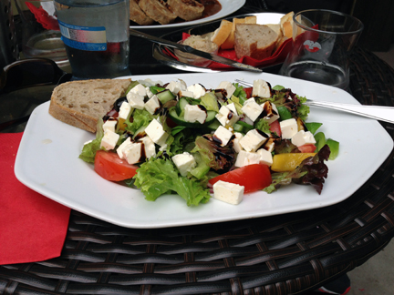 GreekSalad Published August 13, 2013 at 432 × 324 in GreekSalad Again from Konírna , another good choice is Greek salad with vegetables, olives, onion, cheese and white balsamic vinaigrette