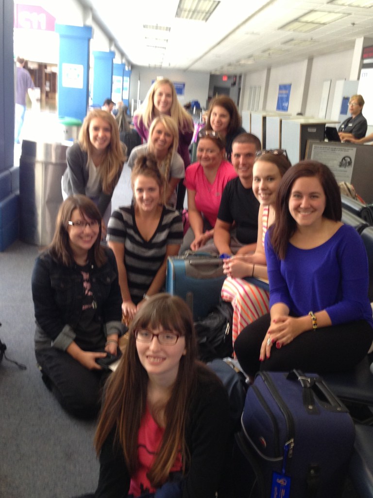 image Published August 3, 2013 at 2448 × 3264 in image Everyone is rested and ready for a great adventure as the group prepares to board the first flight — Cleveland to Newark. The gang’s all here,