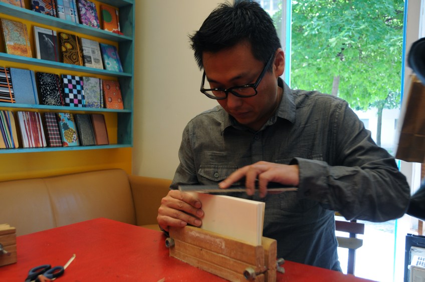 RoughingBindingEdge Published June 6, 2018 at 2400 × 1594 in RoughingBindingEdge We had to line up the pages,put them in wooden presses and rough the edges with a file.
