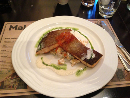 Salmon2 Published August 13, 2013 at 432 × 324 in Salmon2 Korina also offered for dinner roasted salmon-trout from the Šumava Foothills, served on lukewarm potato-and-leek salad with mayonnaise, curd cheese and a lightly boiled egg, with wild salmon caviar.
